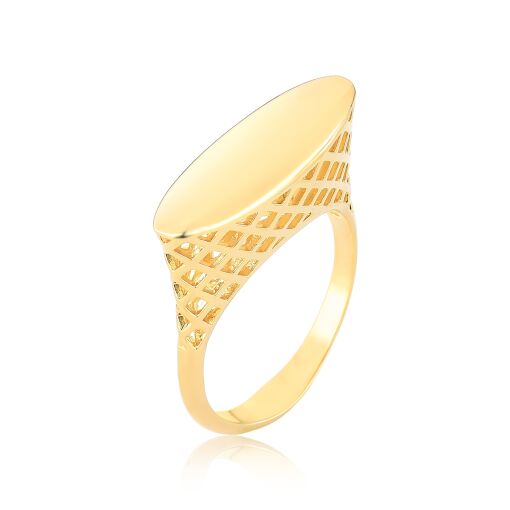 Anel Texturizado com Chapa Lisa Banhado a Ouro