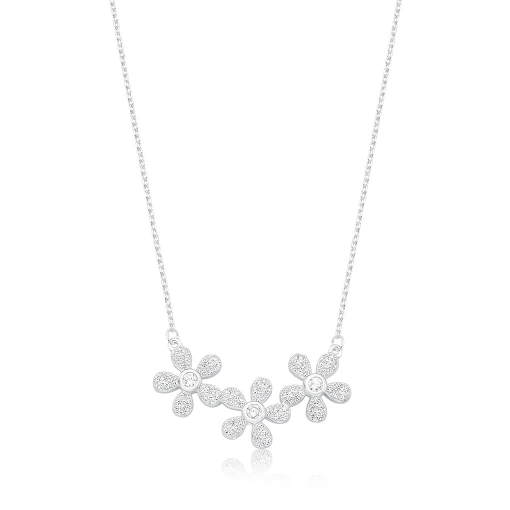 Gargantilha Flor Cravejada - Prata 925